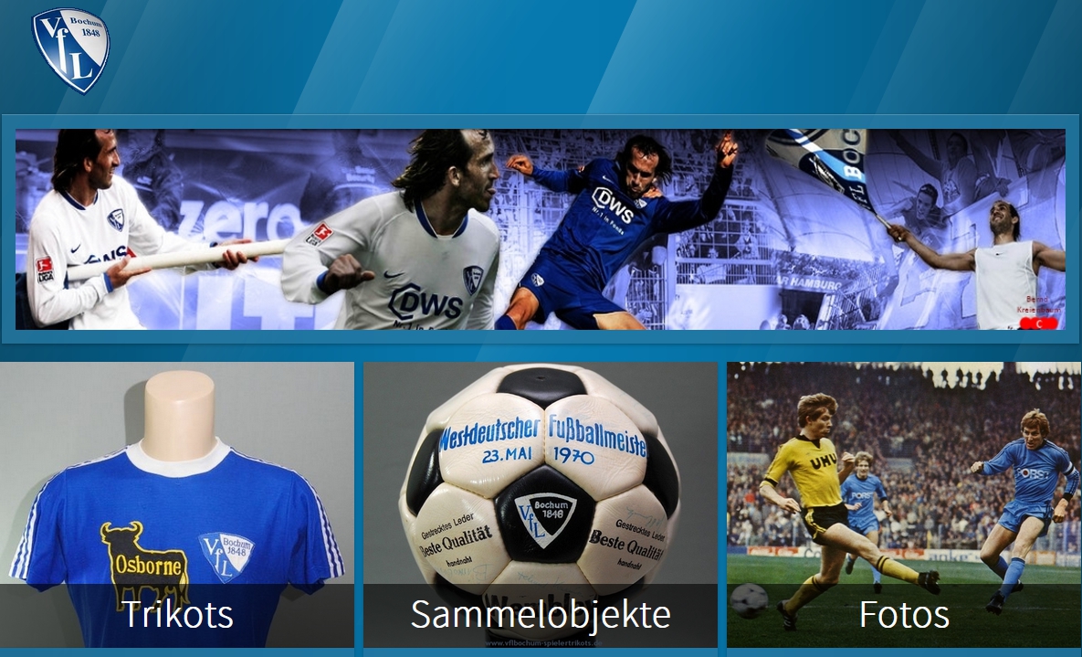 Auf dieser Webseite möchte ich Euch meine Sammlung von original VfL Bochum Spielertrikots vorstellen. Ausserdem könnt Ihr einen Blick in die Foto-Historie des VfL werfen. Zu sehen sind Bilder aus der Vereinshistorie, Spielszenen sowie Mannschaftsbilder. Dieser Bereich wird nach und nach mit weiteren Fotos ergänzt. Abgerundet wird meine Sammlung mit Sammelobjekten rund um den VfL. Hier sind auch Objekte anderer VfLer mit aufgenommen. Die Fotos und Sammelobjekte stammen überwiegend aus der Zeit von 1950 - 1990.